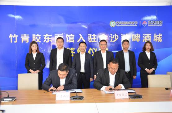 4月10日, 金沙滩啤酒城举行竹青胶东摔面入驻签约仪式,300年历史传承的特色美食、山东省非物质文化遗产--胶东摔面正式签约入驻青岛国际啤酒节,让海内外游客畅饮美酒的同时,品尝舌尖美食、探寻舌尖魅力。