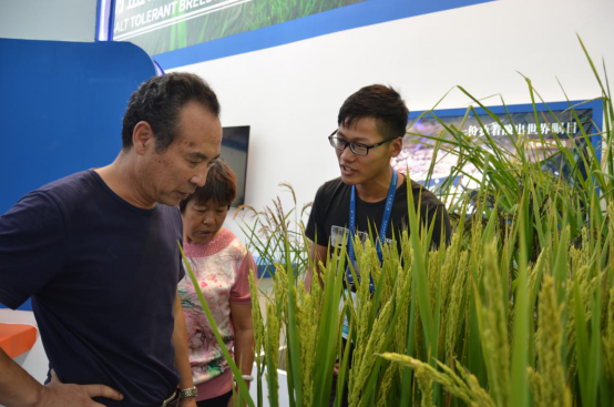 以“蓝色脉动”为主题的山东·青岛馆集中展示了山东及青岛推进新旧动能转换、实施海洋科技自主创新的新成果,以及青岛西海岸新区实施海洋战略、率先蓝色跨越的新亮点。哈工程、北船重工、海西重机、华大基因、三泰集团等驻青高校、企业集中亮相,主要展出海工装备、船舶制造、海洋生物、海洋医药、基因工程、海水淡化等蓝色科技创新发展技术,凸显蓝色经济发展的无限潜力。在青岛海水稻研究发展中心展区,负责人杜德乐正在介绍“海水稻”:“我们此次参展的水稻种质共有30份,包括优质品系、有色品系、耐盐碱品系和多倍体品系四大类。其中耐盐碱品系主要是针对盐碱滩涂培育的耐性品种,俗称‘海水稻’。相比普通水稻,可在盐碱化的土壤环境中生长,这是袁隆平院士牵头参与的课题。”歌尔科技VR体验区排起了长队,不时传来体验者的阵阵欢呼。